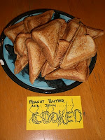 3.) Peanut Butter and Jelly Cooked (Mischelle Vreeman) - Peanut butter and jelly sandwiches pressed into hot pockets in a sandwich press. The Peanut butter and jelly mix so well together when warm.